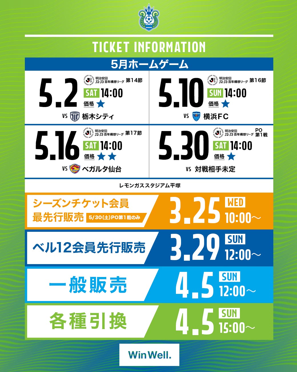 【明治安田J2・J3百年構想リーグ】5月ホームゲーム チケット販売について