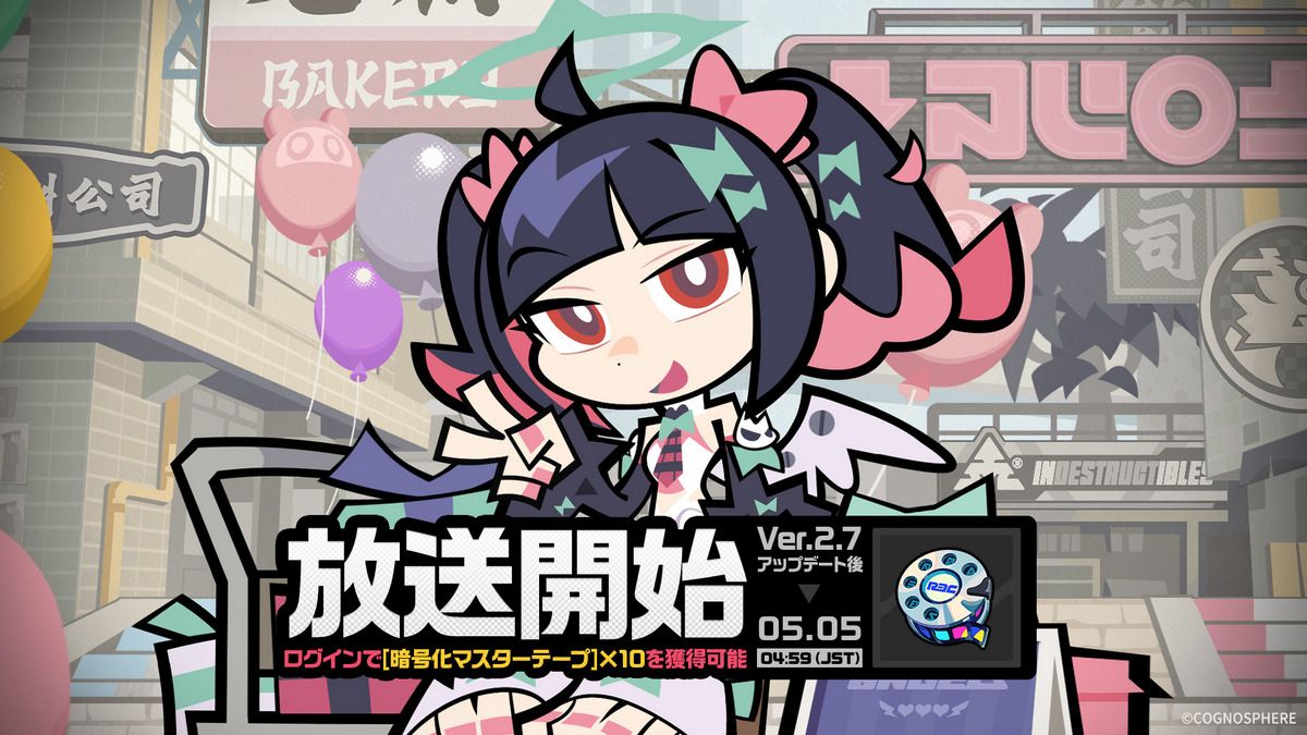 【イベント期間】 Ver.2.7アップデート後 ~ 2026/05/05 04:59(JST) 【参加条件】 インターノットレベル5以上、かつメインストーリー序章「兎と縄」をクリアし、「イベント」機能を開放すると参加可能。 【イベント詳細】 • イベント「放送開始」期間中、累計7日ログインで「暗号化マスターテープ」×10を獲得できます! • すべての報酬を受け取った翌日の05:00(JST)にイベントページが閉鎖されます。