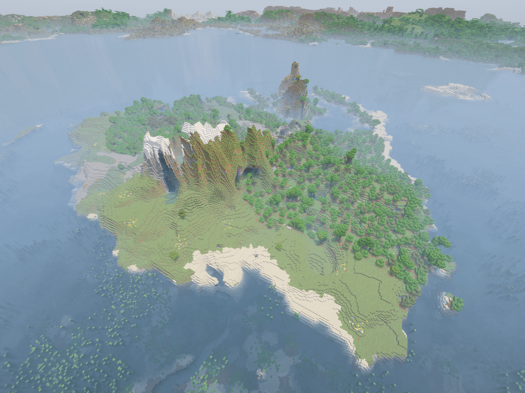 全体的には主に森林で、最も美しい島ではありませんが、それが事実であるため、島を建設して見栄えを良くするよう促すと思います。 それなりの魅力はあるよ シード: 311741010 Java 1.21で作成されたスクリーンショット by Consistent-Cost-231