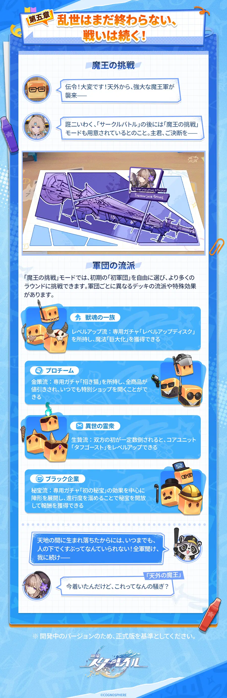 戦いをすべてクリアした後、解放済みの軍団から任意の軍団を選択し、謎に包まれた天外の敵と対峙することができます。