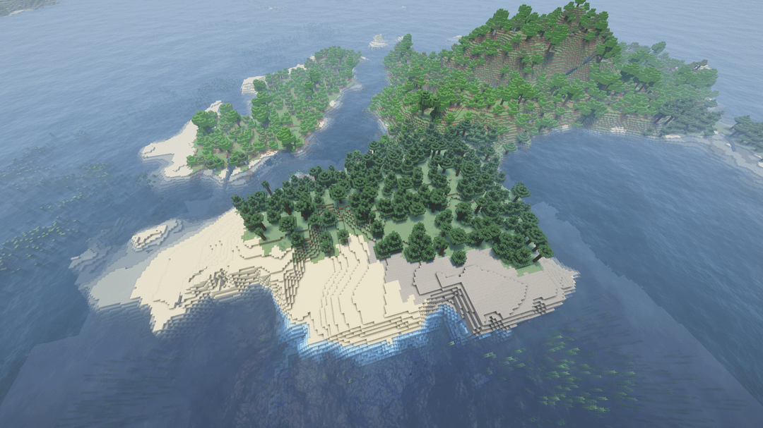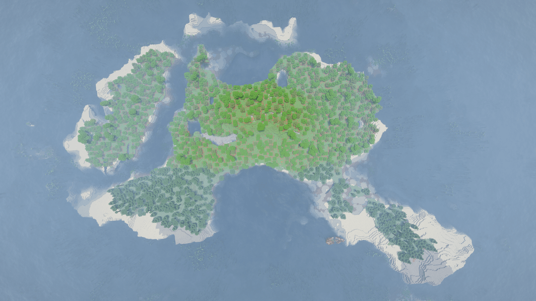 それからあなたは島に参加することができます、そこでは4つの異なる種類の木材で作られた、ほぼ完全に半分沈んだ難破船に遭遇します。私は世界が1つの難破船で3つの異なる難破船を生成したと思いますが、それはほとんど2つの異なる半分で作られています、右手前にいくつかのオークブロックがあるだけで、残りはジャングル、ダークオーク、スプルースです。