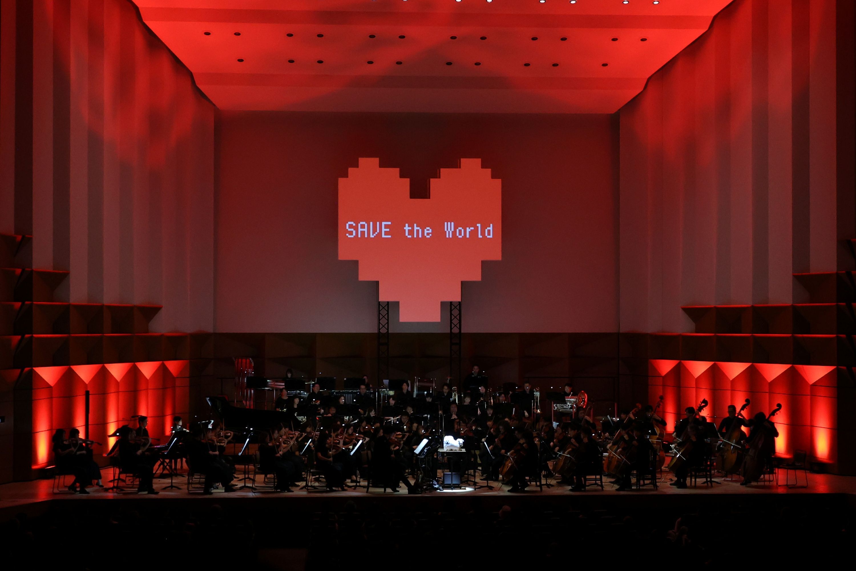 コンサートはゲーム本編のストーリーに則って組まれたプログラムであったのでこの2曲が演奏されたのはまさに終盤。それまでの楽曲に本編で起こるあれやこれやに思いを馳せつつ、なんならステージ上方には『UNDERTALE』のシンボルである粗めのドットのハート、そちらがモニターとなりイベントやバトル時の映像を流したりまでしてくれるのだから、コンサートホールの圧倒的な音のサラウンド感も相まってその体験は極上、至高の没入感であった。プログラムは進行し、そしてついにその瞬間。「夢と希望(Hopes and Dreams)」のイントロが鳴らされると……