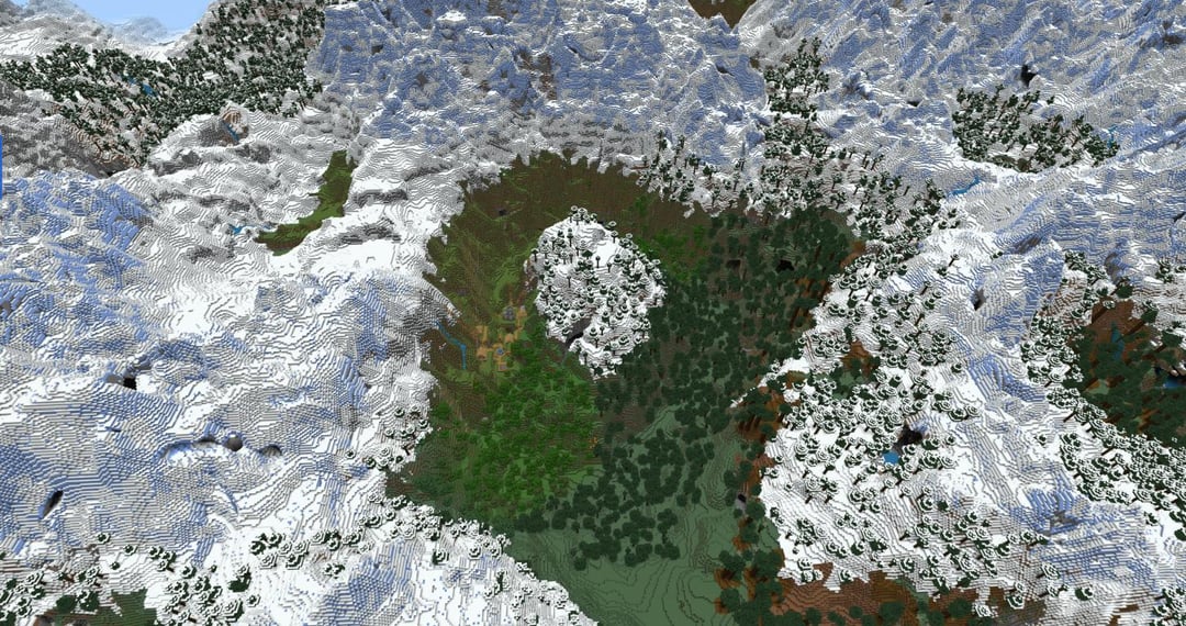 スポーンエリア内およびその周囲には、建物を建てるのに最適なスポットが他にもあります。写真は Connors3462 にお願いします。シード: 3000549610512205632 by Miserable-Gur1752