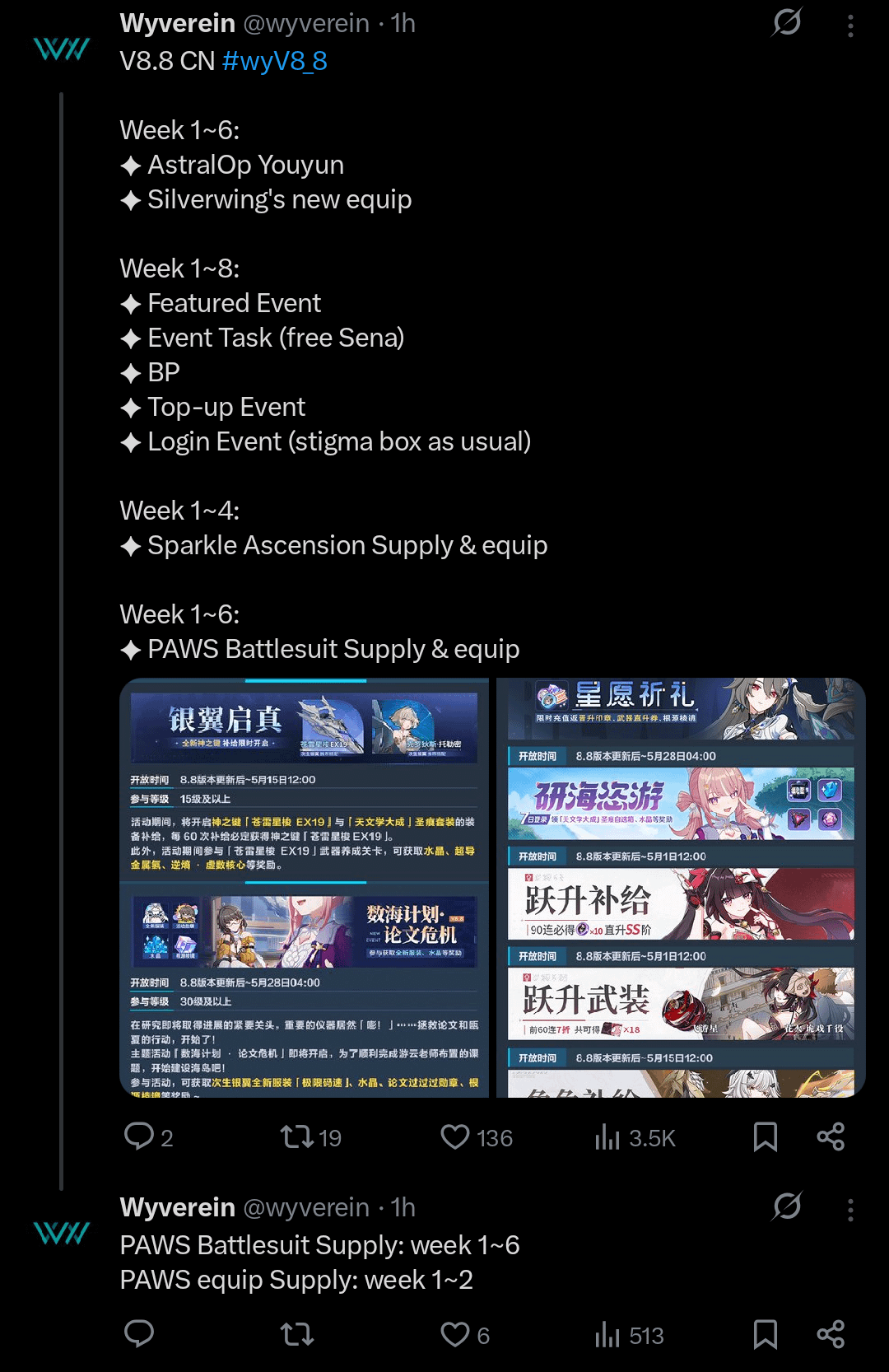 最初の 6 週間で 8.8 バナー — SW Equipment、Youyun AOP、Sparkle Ascension、Helia rerun