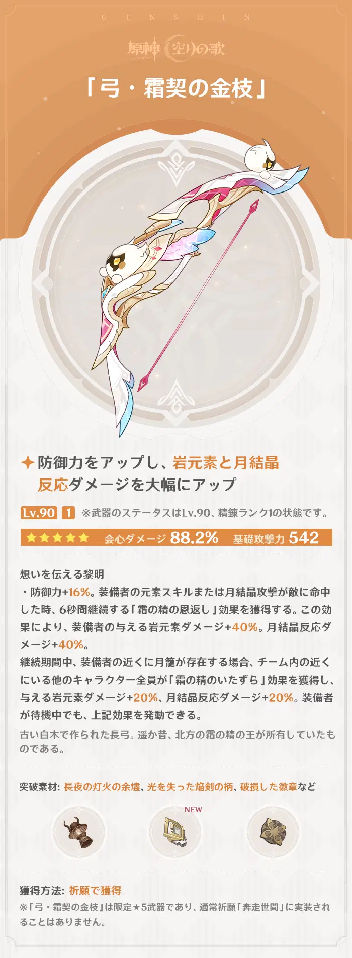 旅人さん、こんにちは!4月8日のバージョンアップ後、イベント祈願「神鋳賦形」が開催されます。イベント期間中、「弓・霜契の金枝」の出現確率が大幅アップ!