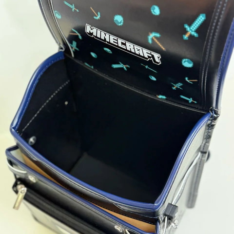 ランドセルを開けると、かっこいい「ダイヤモンドの剣×ダイヤモンド柄」が広がる。外側はシンプルなので、6年間飽きずに使い続けやすいデザインとなっている。
