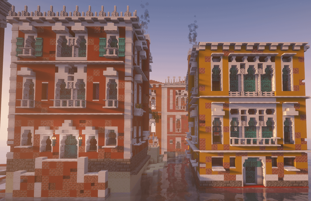 デバッグスティックを使ってサバイバルでこれを構築します。 (サーバーショップ経由で入手) ヴェネツィアン・ゴシック様式で建てられた小さな家々。このスタイルではまだあまり構築していないので、完全ではありません。 🙂 by Embarrassed_Ad_2165