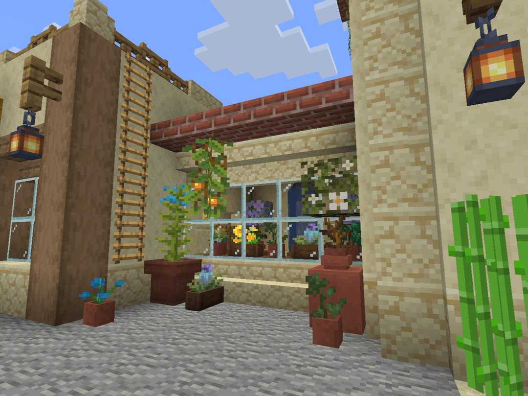 別荘の 2 つの部分の間にある小さな通路が、私のお気に入りの居心地の良い場所の 1 つになりました。 いくつかの MOD を備えた組み込みのサバイバル: 農家の喜び、 補足、 バイオーム・オ・プレンティ その他の小さなMOD。 by ConcreteBerry