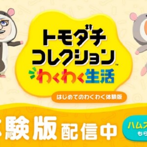 現在配信中の体験版では、最大3人のMiiを作って、序盤の生活を楽しむことができます。体験版のセーブデータは製品版への引き継ぎが可能で、最後まで遊ぶと「なりきりハムスターセット」がプレゼントされます(6色のうち、ランダムで1色)。