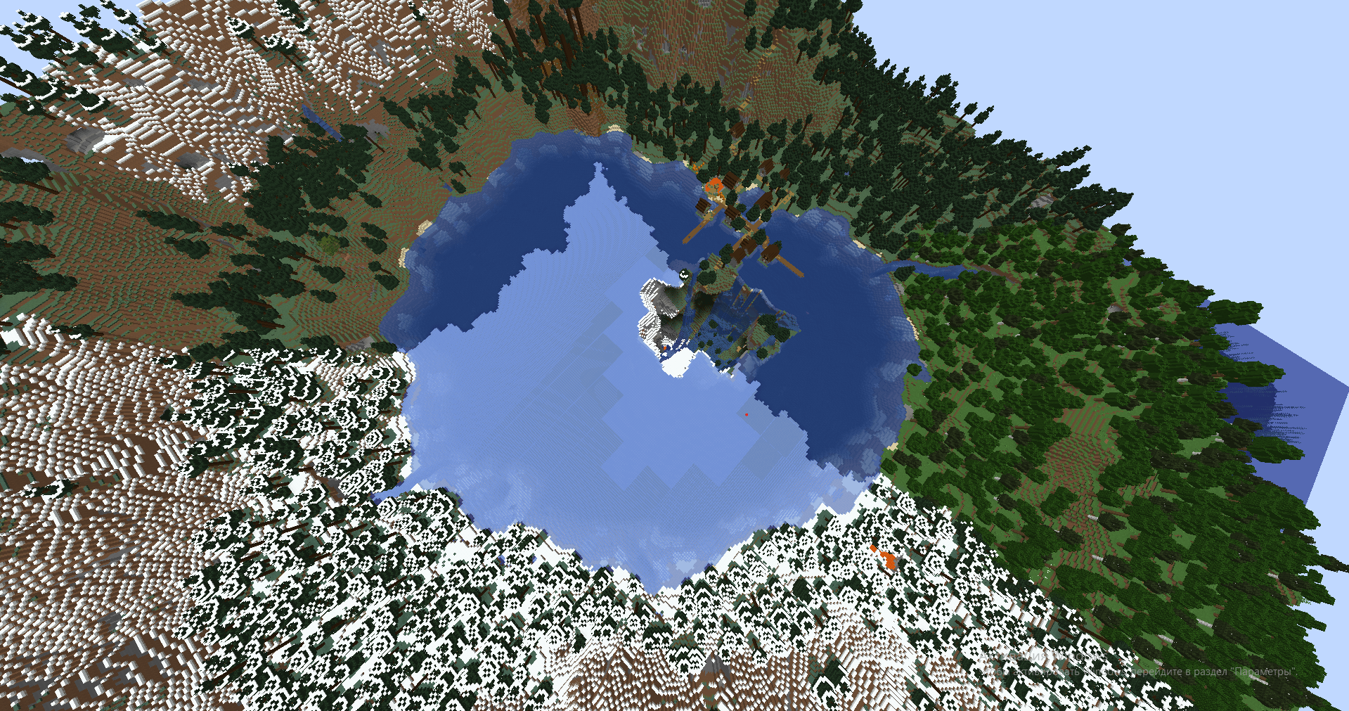 村のあるシンクホール。シード:1000000085464196。座標:-653 -180。バージョン:1.19.2。