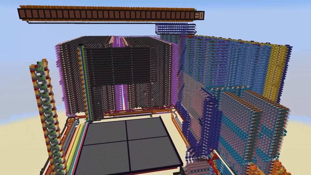 ちなみに、本装置には実はほんの少しだけコマンドブロックが使用されている。描画部分で用いられているコンクリートパウダーを無限に生み出すというもので、コマンドブロックを用いずともコンクリートパウダーを補充する漏斗状の装置で同等の仕組みを実現できる。
