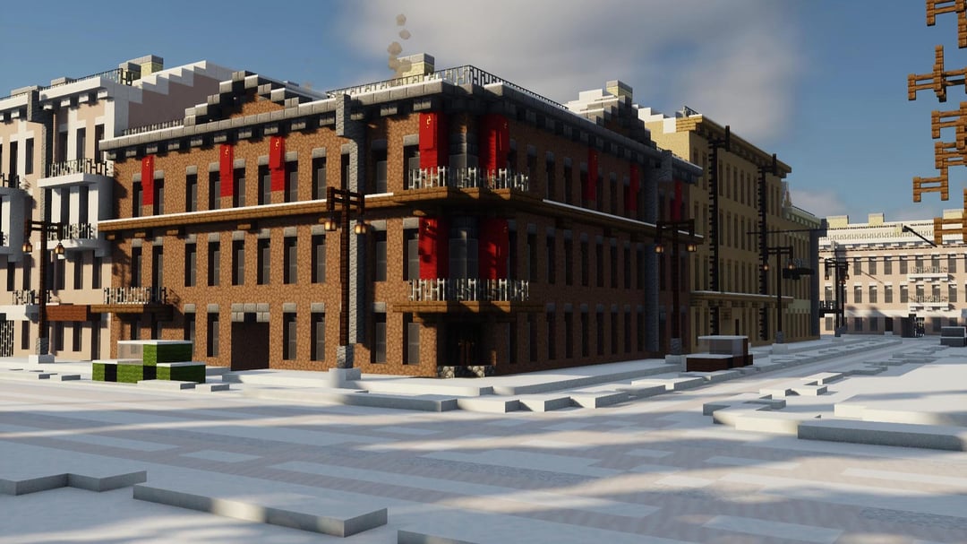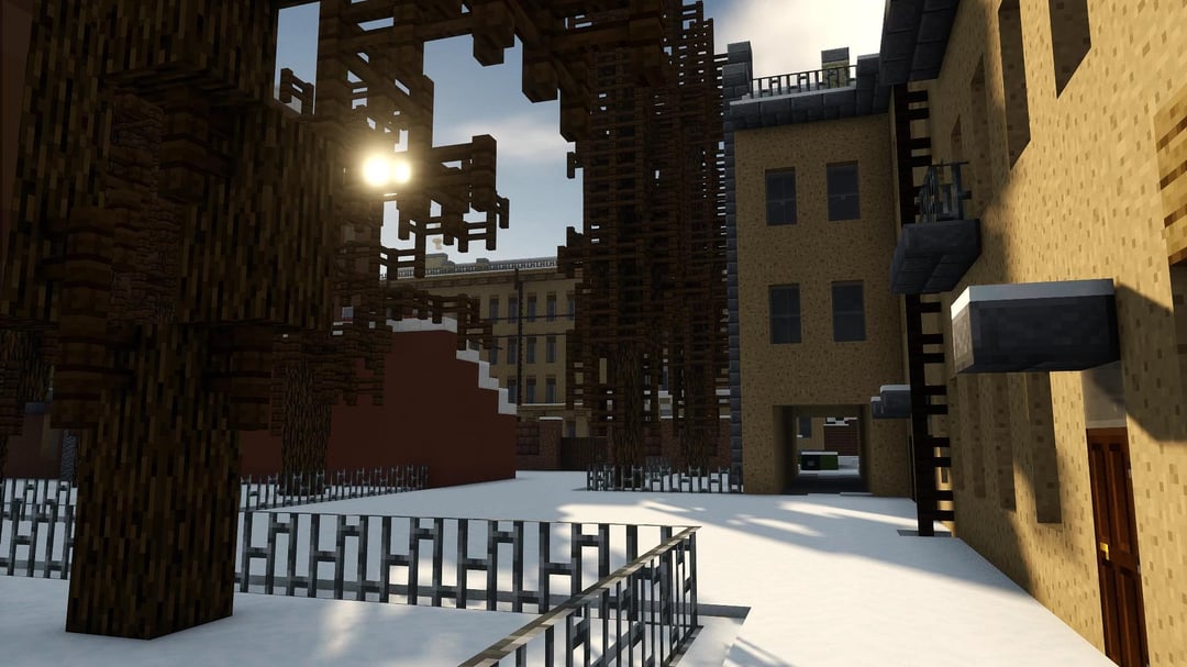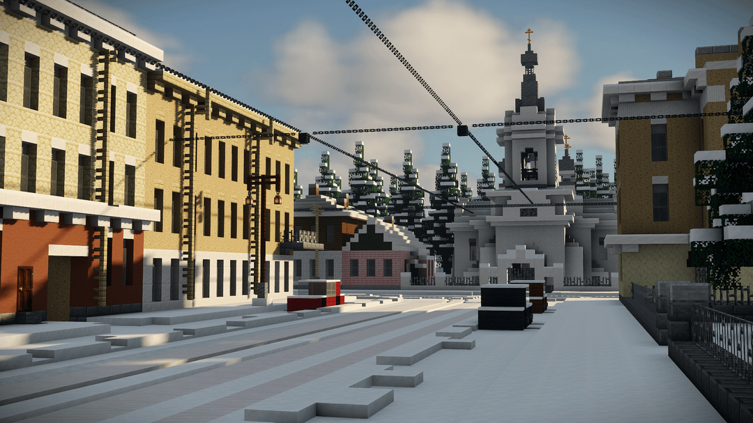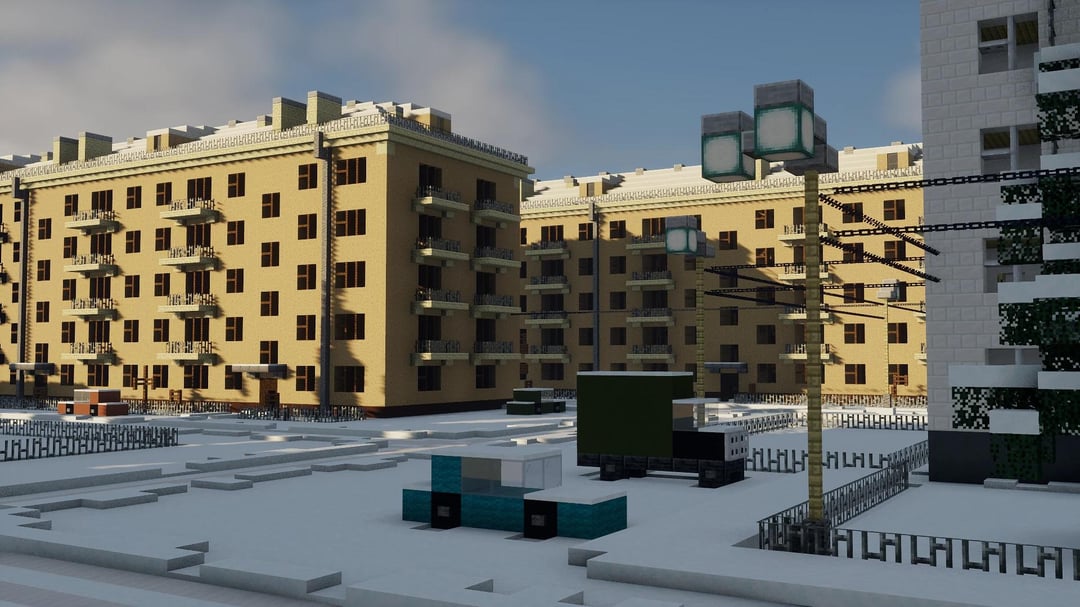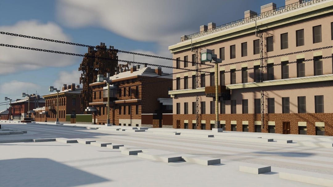 1960 年代の東ヨーロッパの大規模な冬の都市。 (4 年以上かけて完全に Minecraft で構築)