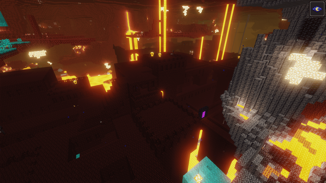 スポーン時から、廃墟となったポータルチェストには、それを起動するために必要なものがすべて揃っており、反対側では、融合した 2 つの要塞の真ん中にいます。 (いくつかの村、桜の木立、タイガも近くにあります) by MadLadGalahad