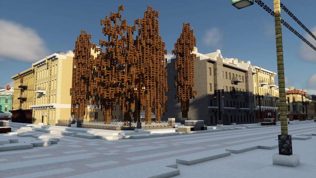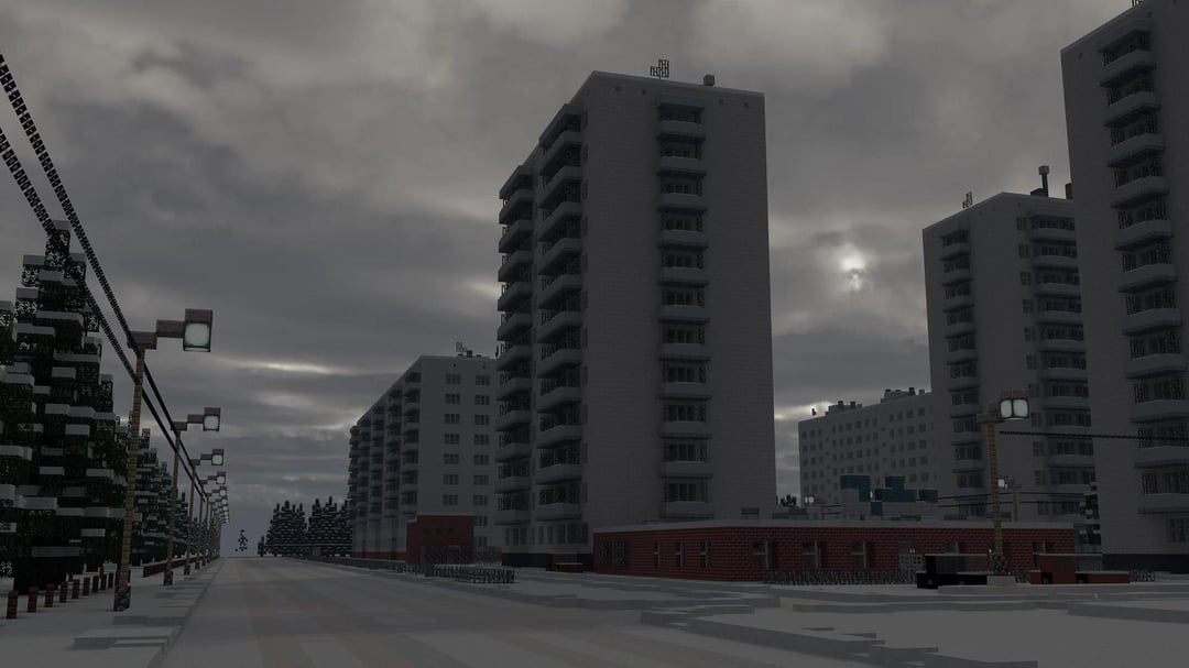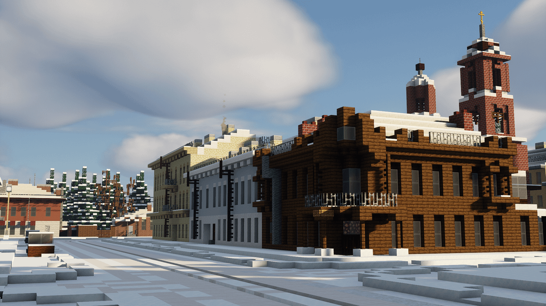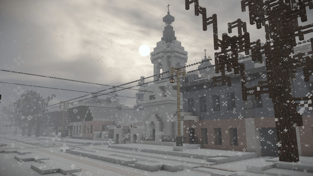 1960 年代の東ヨーロッパの大規模な冬の都市。 (4 年以上かけて完全に Minecraft で構築)