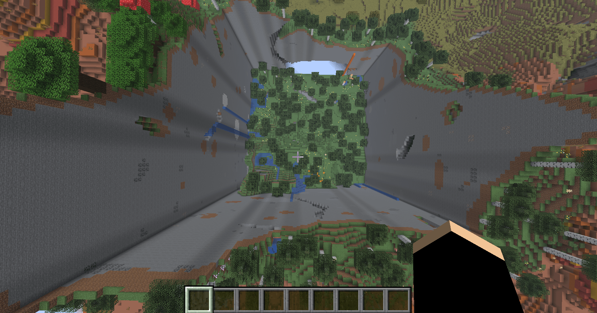 深く掘られたようなチャンクと3つのバイオムがあります