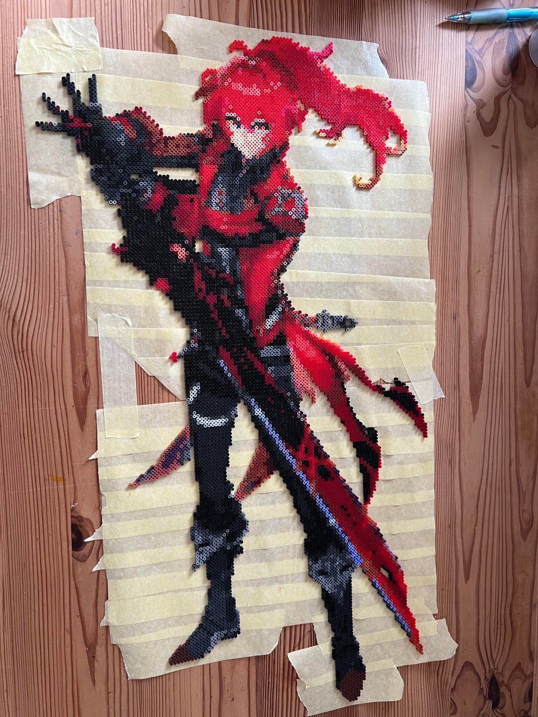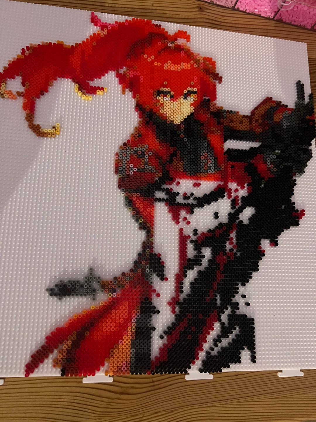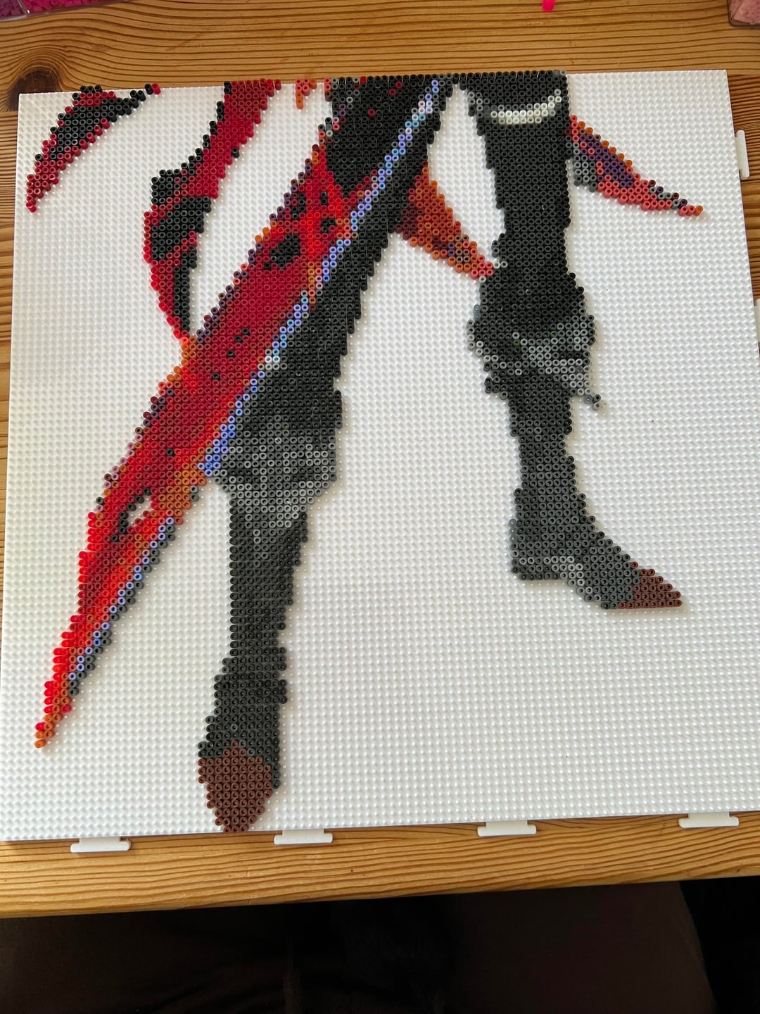 最初の写真は完成品で、他の写真は次のとおりです: アイロンをかけずにテープで留めた // 脚をペグボードに // 上半身をペグボードに // 上半身の完成品 // 面白い頭の完成品 結果を気に入っていただければ幸いです <3 個人的には彼の仕上がりにとても満足しています、私は彼に合ったチャイルドを作るつもりです <3 by NaturalAppointment84