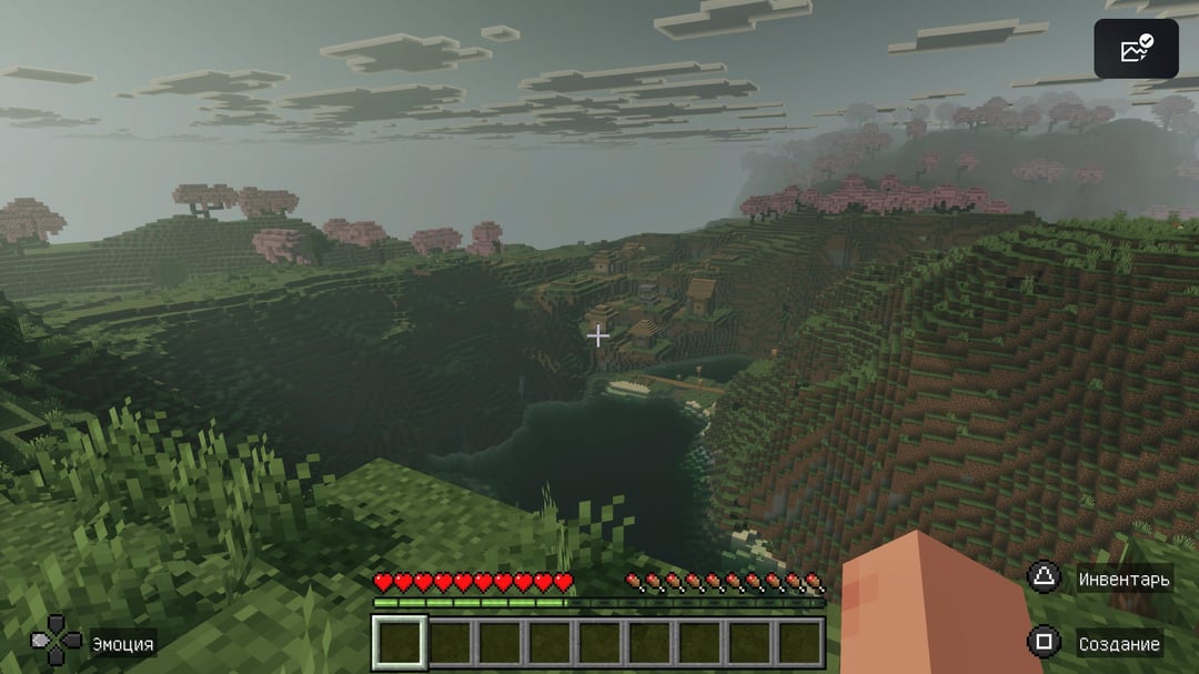 近くの 3 つの桜の木立と雪の山 (またはおそらく雪のタイガ、正確にはわかりませんが笑) に囲まれた村の隣にスポーンします。 Java で動作するかどうかは不明ですが、Bedrock では間違いなく動作します