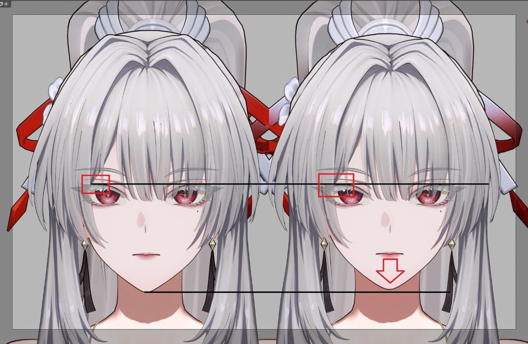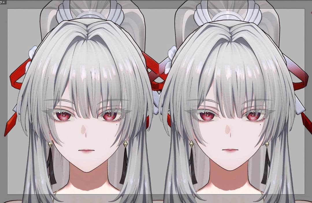 GameData Leaks による 3.2 と 3.3 の Hiyuki のモデルの比較
