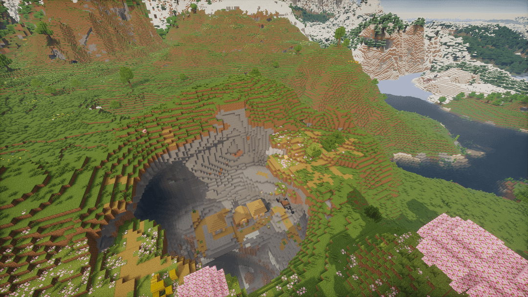 2500 ブロック以上の長さの山脈にある大きな渓谷 [4238478963916302897 @ (1600, -3000)]