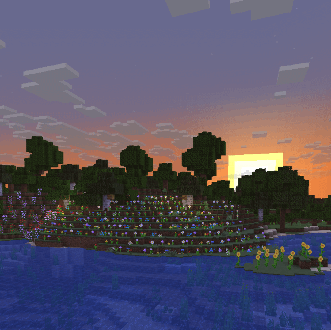 私の意見では、このシードの最も優れている点は、 花の森 ウェスタン川の岸辺で。 Minecraft の多くのバイオームや構造物にすぐにアクセスできる、居心地の良い拠点を構築するのに最適な場所です。