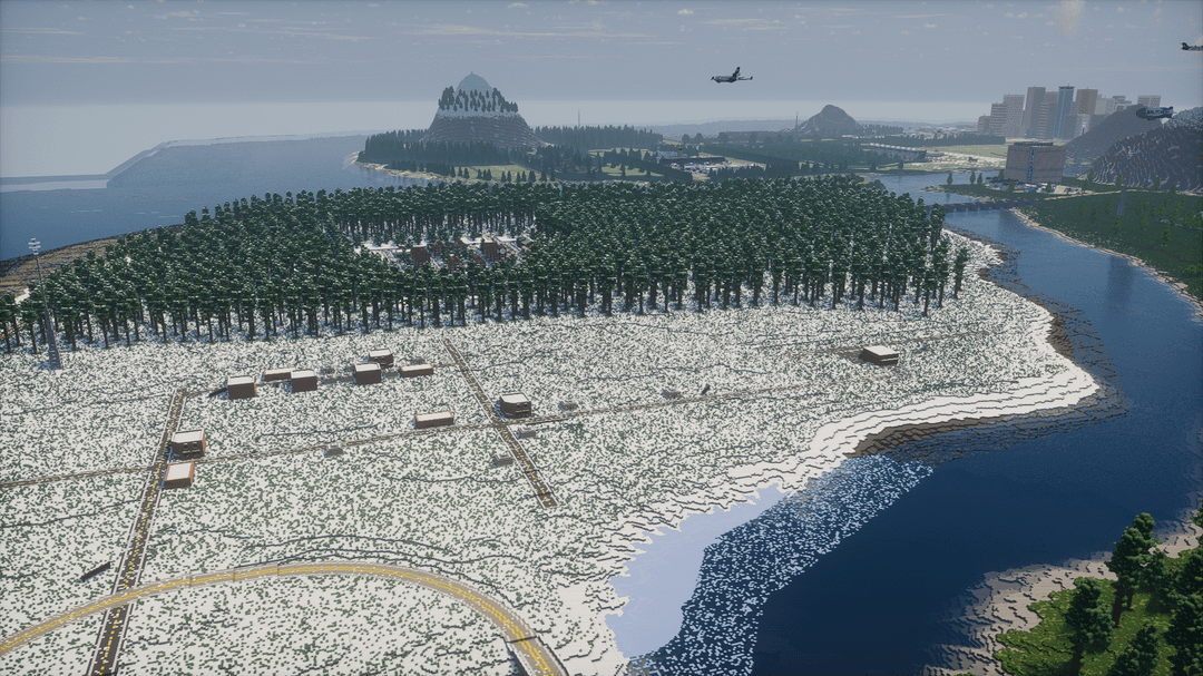 画像はレンダリング距離を増やすために Voxy Mod を使用して撮影されました。