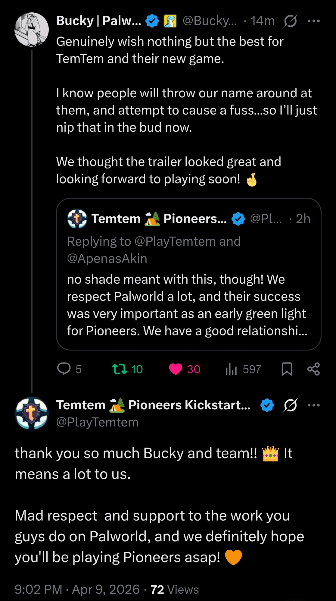 Twitter での健全な Palworld と Temtem のやり取り