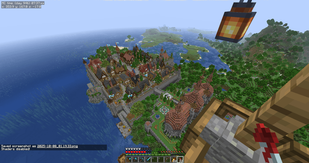 使用されているその他の MOD: Minihud スイート、Freecam MOD、Distant Horizons が注目に値します。